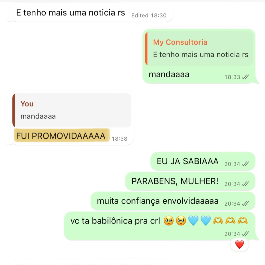 Mylena sempre aceitava tudo no trabalho sem questionar. Depois do Confiança Inabalável, pediu reunião com a chefe para renegociar salário, conseguiu 20% de aumento. Na semana seguinte, foi convidada para liderar o projeto mais importante da empresa.